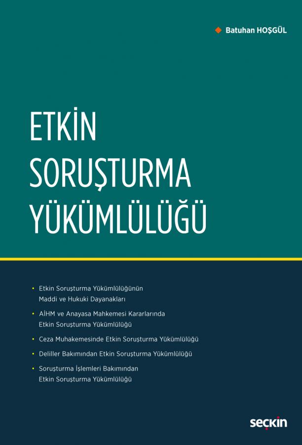 İki bölümden oluşan çalışmanın; "Etkin Soruşturma Yükümlülüğü Kavramı ve Unsurları" ismini taşıyan ilk bölümde, Avrupa İnsan Hakları Sözleşmesi'nin ve Anayasanın devlete yüklediği yükümlülükler ve usuli bir yükümlülük olarak etkin soruşturma yükümlülüğü kavramı, kapsamı ve dayanakları inceleme konusu yapılmıştır. Çalışmanın esas konusunun değerlendirildiği ve "Ceza Muhakemesinde Etkin Soruşturma Yükümlülüğü" ismini taşıyan ikinci bölümde ise, Ceza Muhakemesi Kanun'unda soruşturmaların etkinliği ilkesi incelenmiş ve bu doğrultuda uygulamalara ışık tutularak yaşanan aksaklıkların giderilmesi için çözüm önerilerinde bulunulmuştur." (Tanıtım Yazısı)