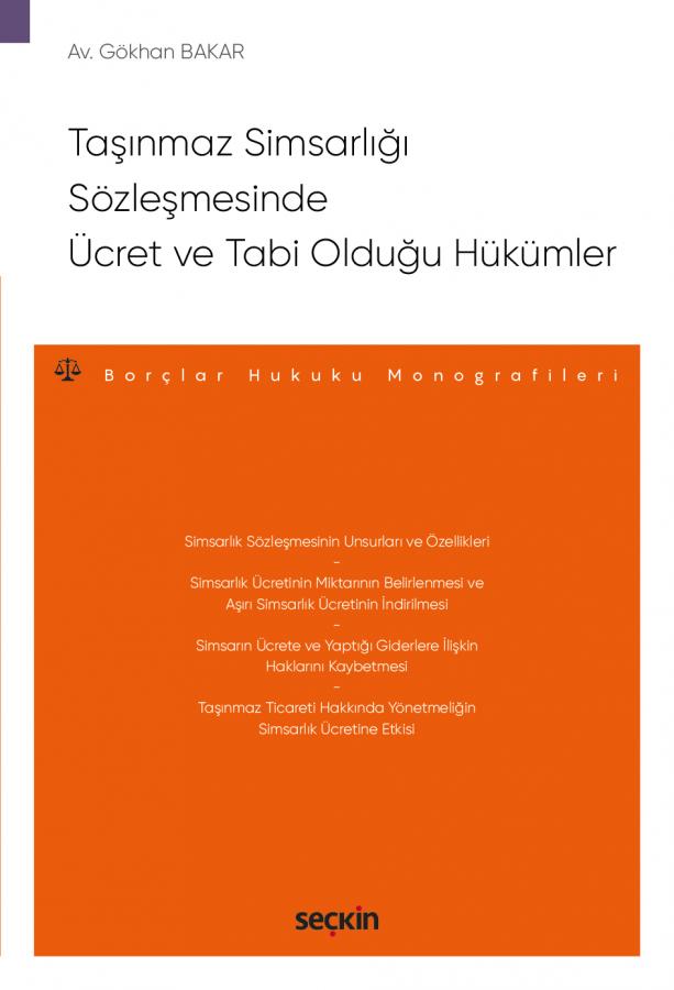 Taşınmaz simsarlığı sözleşmesinde ücret ve ücretin tabi olduğu hükümler; simsarlık ücreti kavramı, simsarın ücreti hak etme zamanı, simsarın ücrete hak kazanmasının koşulları Türk Borçlar Kanunu'nun 520 ve 521. maddeleri kapsamında inceleme konusu yapılmıştır. Simsarlık ücretinin miktarının belirlenmesi Türk Borçlar Kanunu'nun 522. maddesi kapsamında değerlendirilmiştir. Kitapta, kararlaştırılmış aşırı simsarlık ücretinin indirilmesi başlığı altında Türk Borçlar Kanunu'nun 525. maddesi incelenmiştir. Türk Borçlar Kanunu'nun 523. maddesiyle öngörülen simsarın ücrete ve yaptığı giderlere ilişkin haklarını kaybetmesine yönelik yaptırım değerlendirme konusu yapılmıştır. Ayrıca simsarlık sözleşmesinde ücreti etkileyebilecek ikincil mevzuat da değerlendirilmiştir. Güncelliğini koruyan içtihatlar ve özetleri, ilgili kanun maddelerine atıflı şekilde, kitaba ek yapılmıştır.