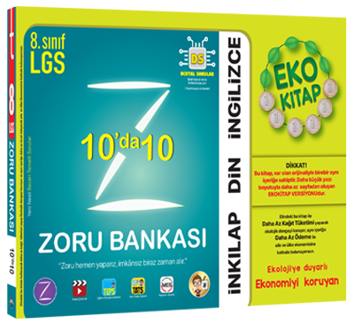 8. Sınıf 10'da 10 Eko Zoru Bankası var olan orjinaliyle birebir aynı içeriğe sahiptir. Daha küçük yazı boyutuyla daha az sayfadan oluşan EKOKİTAP versiyonudur.