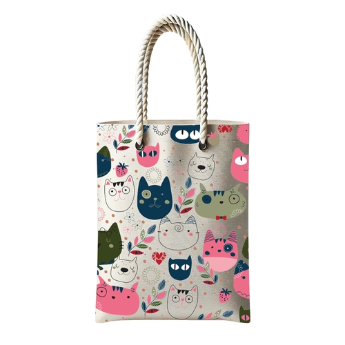 Kedi Desen Temalı Fermuarlı Günlük Kullanım Bez Çanta