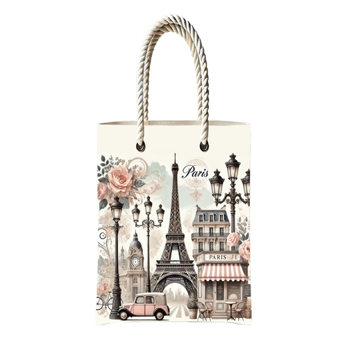 Paris Temalı Fermuarlı Günlük Kullanım Bez Çanta
