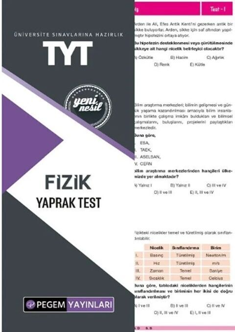 Pegem Yayınları TYT Fizik Yaprak Test